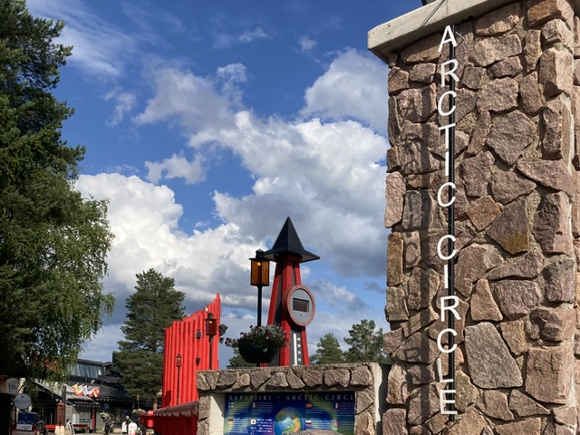 Of course I had! We actually spent our first day walking in the Arctic Circle hiking area. But as we returned to Rovaniemi and passed the signs for Santa’s Village I couldn’t help myself and pulled in to visit. As it was summer, construction works were in full swing and most of the attractions were closed. There were a few children around but the majority of visitors were part of large tour groups queuing up to step across the Arctic circle line. We had to wait our turn but also did the tourist step, and we then waved to our daughter (in the UK) via the Arctic Circle webcam. I managed to ignore the expensive gift shops selling reindeer skins and the like, but did relent and sent a couple of postcards from Santa Claus’ post office. Only so they’d be stamped with the special Arctic Circle postmark.