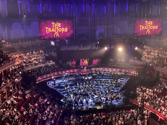 The prom was presented by Claudia Winkleman, the host of the TV show. The Traitors theme ran throughout the afternoon with ex-traitors emerging from the choir and orchestra, Claudia wafting around in a dark cloak, video clips from the programme and performers mingling with the arena audience. It definitely wasn’t your average prom!
